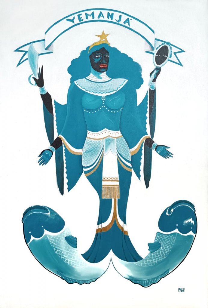 As obras abordam temas ligados à ancestralidade, à religiosidade e à relação histórica de Salvador com o mar, em um período marcado por rituais e manifestações culturais dedicadas a Yemanjá no bairro do Rio Vermelho.