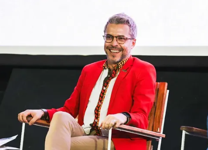 *Eu achei que não tinha nada mais terrível do que o terno vermelho de Bruno de Wagner. Mas aí ele combina o terno vermelho com essa camisa de gosto ainda mais duvidoso... (Tinha que trazer aqui, porque esse terninho foi um dos clássicos do ano)