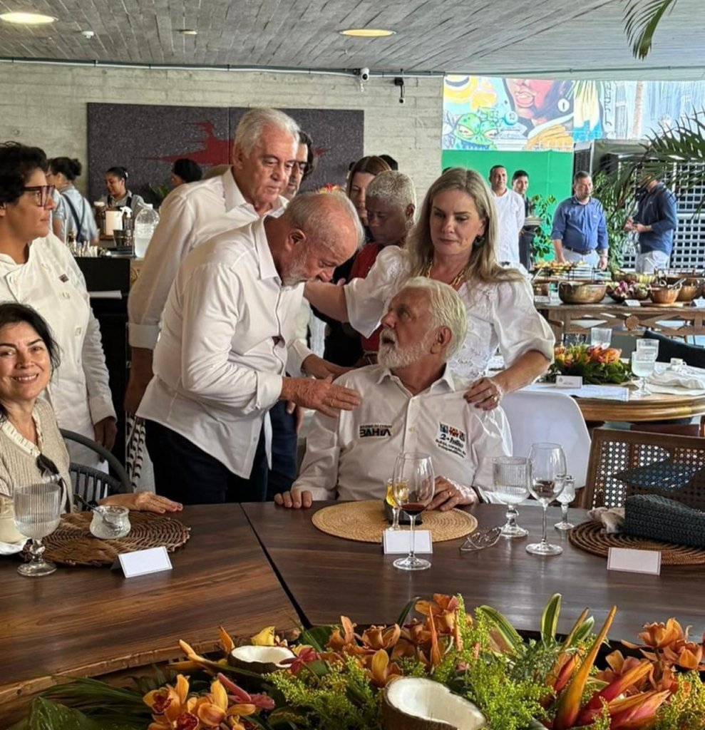 *O problema dessa foto do Mauricinho da Terceira Idade é que a edição saiu pela culatra e os petistas mais pareciam imagens geradas por IA. O Cacique então nem se fala: virou outra pessoa. (Era só um prenúncio do show de horrores que viria por aí)