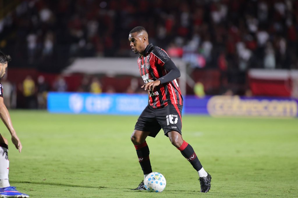 Atrás do gol de empate, o Vitória seguiu no ataque. Aos 24', Baralhas ficou com a sobre do escanteio na entrada da área e chutou forte. A bola passou assustando Rossi.