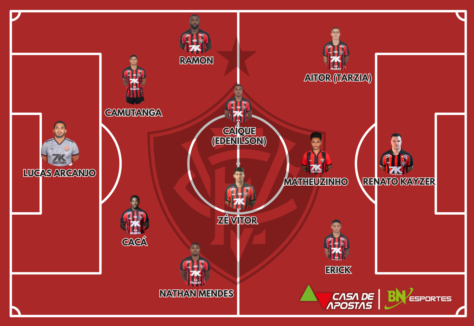 Vitória: Lucas Arcanjo; Nathan Mendes, Camutanga, Cacá e Ramon; Caíque Gonçalves (Edenilson), Zé Vitor (Ronald) e Matheuzinho; Erick, Aitor Cantalapiedra (Diego Tarzia) e Renato Kayzer. Técnico: Jair Ventura.
