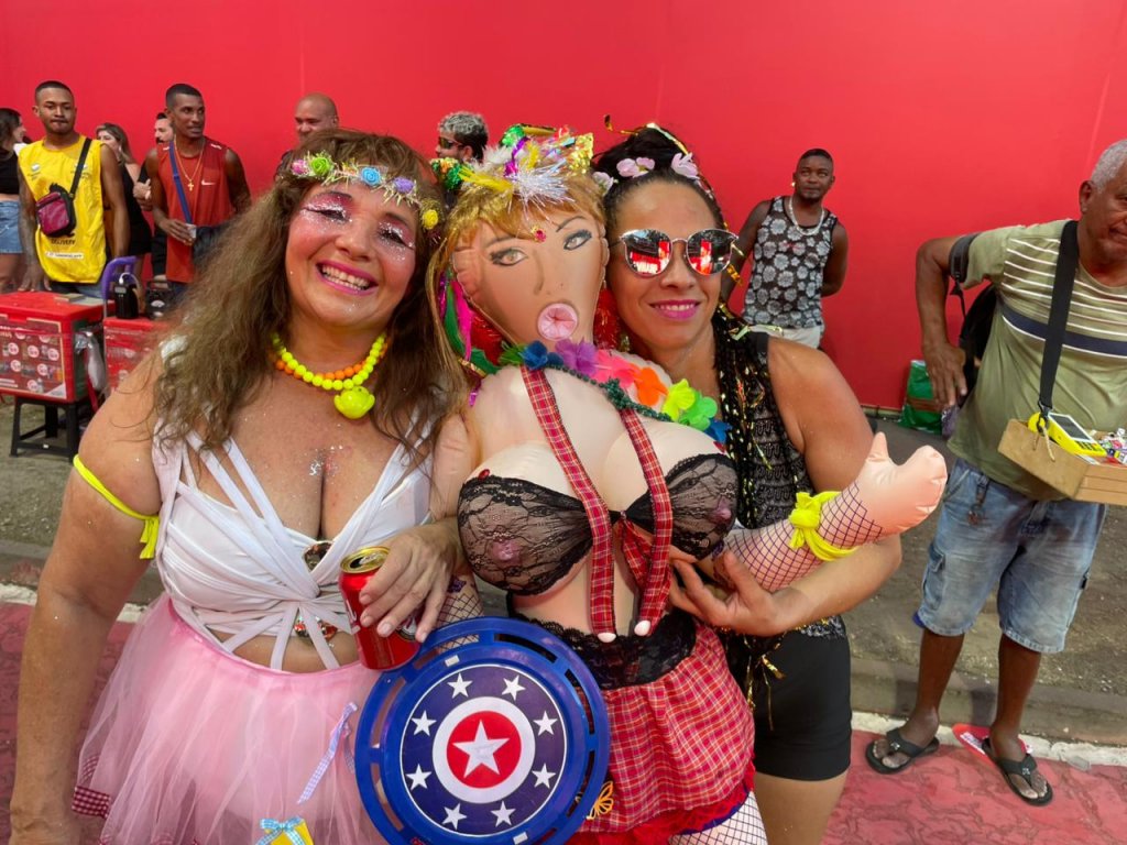 Em sua fase solteira, a costureira se diz “louca pelo Carnaval”, mas não teve oportunidade de ir antes. A foliona levou para sua companhia a boneca inflável Ana Célia.