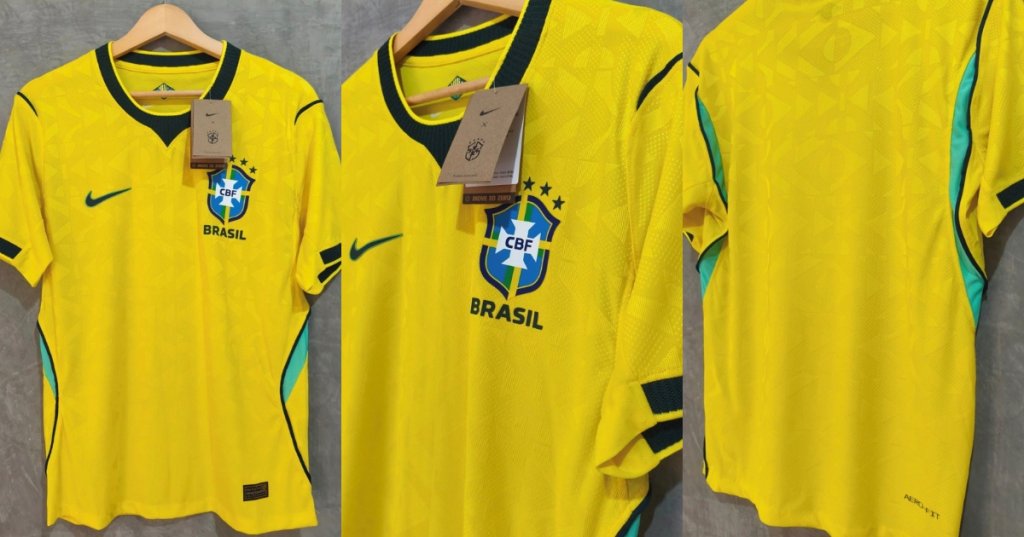 A grande surpresa, no entanto, deve ficar para a camisa reserva. Segundo as informações, o modelo azul será o mais ousado da coleção: no lugar do tradicional "swoosh" da Nike, será utilizado o logo da Air Jordan. O design traz detalhes em azul-escuro, linhas amarelas nas mangas e acabamentos laterais em verde e amarelo.