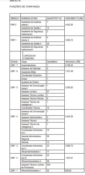 No documento Maia ainda acrescentou que o impacto orçamentário das mudanças para 2024 é inexistente e, para o próximo ano, as projeções são compatíveis com o orçamento do Ministério Público. O procurador-geral explicou que o projeto atende aos limites prudenciais estabelecidos pela Lei de Responsabilidade Fiscal (LRF).