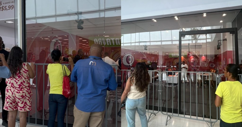 Apesar da quebra de expectativa, a frente da loja da Casa de Vidro ficou cheia de curiosos para acompanhar a chegada dos anônimos que estão prestes a se tornarem os mais famosos do país, com chances reais de receber o maior prêmio da história do programa.