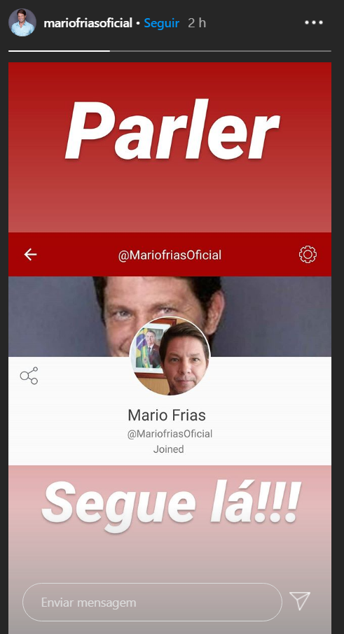 Seguindo os passos de outros bolsonaristas, o secretário Especial da Cultura, Mario Frias, divulgou sua migração para o “Parler”, uma rede social amplamente usada pela direito global, que conta com menos controle a respeito do conteúdo.