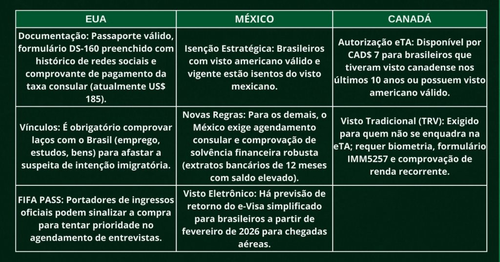 O torneio contará com 12 grupos de quatro seleções. As autoridades recomendam que torcedores das nações classificadas iniciem os processos de visto com no mínimo seis meses de antecedência, dado que o trânsito transfronteiriço entre as 16 cidades-sede continuará sujeito a controles aduaneiros completos, sem previsão de corredores diplomáticos especiais.