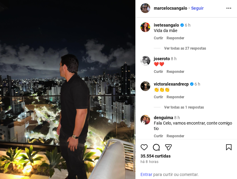 No registro compartilhado pelo adolescente de 16 anos, não há legenda no Instagram. Marcelo aparece em uma cobertura, sem mostrar o rosto, olhando para a rua.