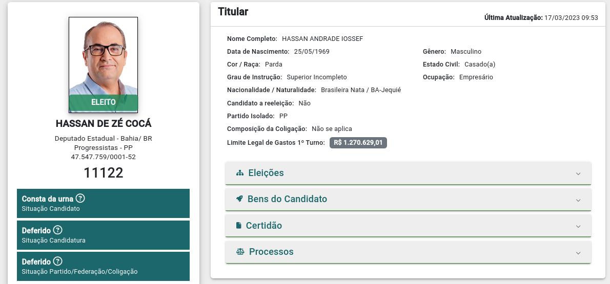 Outro fator curioso é que o candidato do PSD destas eleições é irmão mais novo do deputado estadual Hassan Iossef, do PP. O detalhe é que o parlamentar foi secretário de Governo na gestão de Zé Cocá e recebeu apoio do prefeito para se eleger na Assembleia Legislativa da Bahia (AL-BA). Inclusive, o agora Hassan Iossef durante as eleições de 2022 adotou o nome de “Hassan de Zé Cocá” nas urnas.